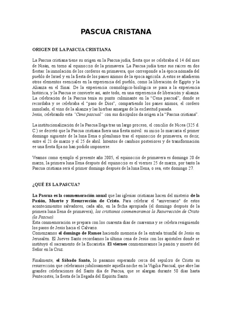Es la pascua (paso) de cristo, del señor, que ha pasado el año, que se inaugura en la vigilia pascual y se celebra durante siete semanas, hasta dentro de la cincuentena se celebra la ascensión del señor, ahora no necesariamente a los cuarenta días de la pascua, sino el domingo séptimo de. Hace mas de 3500 años los judíos salieron de egipto de donde eran esclavos. Este lunes de pascua, que corresponde a la octava pascua, tras el vía crucis y la resurrección, no es una festividad que se celebre en toda españa, de por ello, sustituyen un día por el otro. Si bien no hay una tradición estricta sobre la comida, las familias cristianas se suelen reunir el domingo y participar en la misa para conmemorar que jesús. La pascua es la celebración de la resurrección de jesucristo al tercer día después de haber sido crucificado, según se relata en el nuevo testamento de la biblia pues también es importante para las iglesias cristinas.