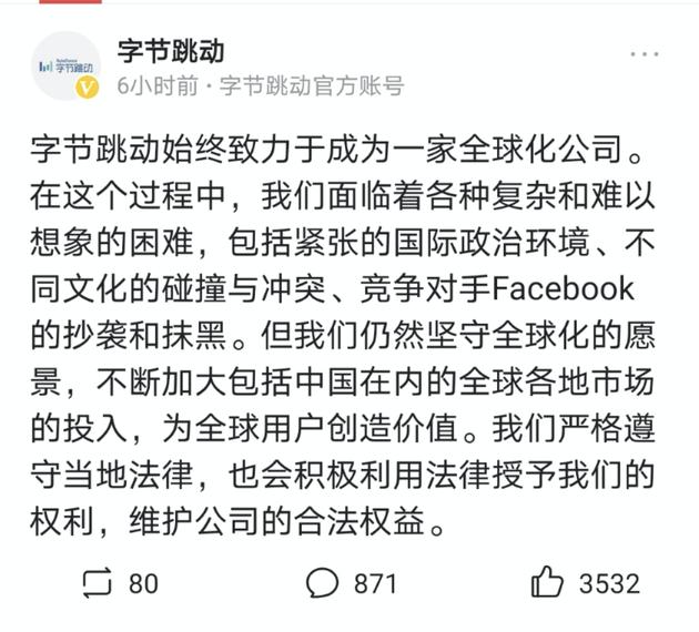 据了解,去年 3 月 12 日,创始人张一鸣交棒中国业务,转任公司全球 ceo。 当时他称更专注于长期重大课题的探索和战略思考,包括全球化企业管理研究,企业社会责任,以及教育等新业务方向。 同时,张一鸣会花更多精力完善字节跳动全球管理团队。 0. The site owner hides the web page description. Search for text in self post contents. 微软在其新闻稿中宣布,就收购 tiktok 北美业务事项与字节跳动的相关洽谈最晚会在 9 月 15 日完成。 在此期间,微软将继续与包括美国政府和特朗普在内的各方保持对话。 微软和字节跳动已经向 cfius 提交通知表达了这次交易的意向。 微软计划收购 tiktok 的美国、加拿大、澳大利亚和新西兰业务。 Search for text in url.