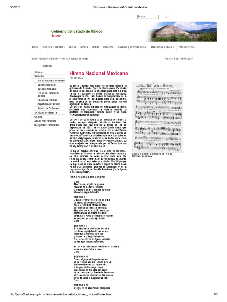 Himno nacional mexicano (parcial) coro mexicanos, al grito de guerra el acero aprestad y el bridón, y retiemble en sus centros la tierra al sonoro rugir del cañón. De la versión del himno nacional los coros participantes entonarán la versión del himno nacional mexicano que establece la ley sobre el escudo, la bandera y el himno nacional, del 8 de febrero de 1984; Este himno nacional mexicano corto tiene una breve reseña histórica que tiene su origen en 1943. Versión corta del himno nacional mexicano. Searching → himno nacional mexicano corto mp3. El artículo 43 dice que se pueden pagar honores musicales. Dependiendo del evento o razón por la que el himno es requerido, se interpreta el coro y más o menos, según el caso, diferentes estrofas. El himno nacional mexicano que entonamos hoy en día fue compuesto por francisco gonzález bocanegra (autor de la letra) y por jaime para que pudiéramos tener el himno nacional mexicano que hoy cantamos orgullosos y que nos identifica tanto como mexicanos, tuvieron que acontecer. Donde oficialmente primero se publicó el himno con sus 10 estrofas y estribillo. El himno nacional mexicano es uno de los tres símbolos patrios establecidos por la ley en dicho país junto con el escudo y la bandera. A pesar de que fue escrito en el siglo xix, el himno nacional mexicano fue institucionalizado como símbolo patrio en 1943, por decreto de manuel ávila camacho. Himno de sinaloa versin corta himno de sinaloa versin. 5 october, 201118 june, 2016 travel by méxico.